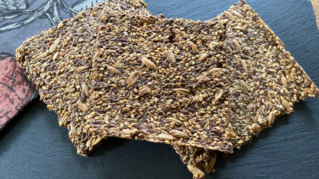 Knekkebrød med mandler og frø.