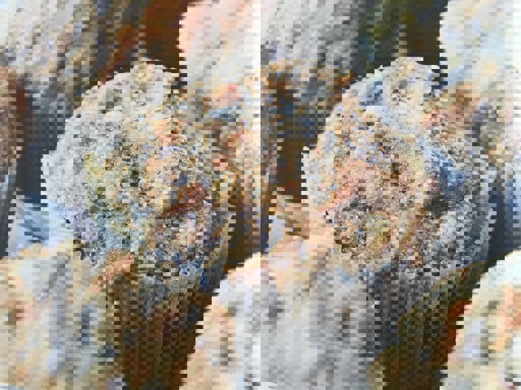 Tilsett smør, ost, mandler, nøtter og bakepulver i eggemassen.